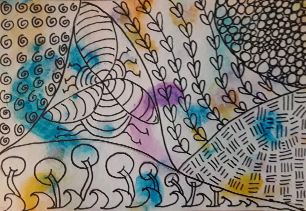 This summer, I decided to give myself sometime in the Painting Playground.  I have created space in my week where I can experiment with paper, pencils and paint. The emphasis is on play not product. This week, I painted with my fingers to return to the process of creating on the page. Then I added some designs with black markers.  They are not perfect works of art, rather they are representations of playing on the page.  I was so focused while doing this work, I dove in and was in the flow for a good hour and half: I made “mistakes,” ripped up paper, spilled water, got my fingertips dirty. It was the most self-fulfilling activity I did all week.  I cannot wait to return!