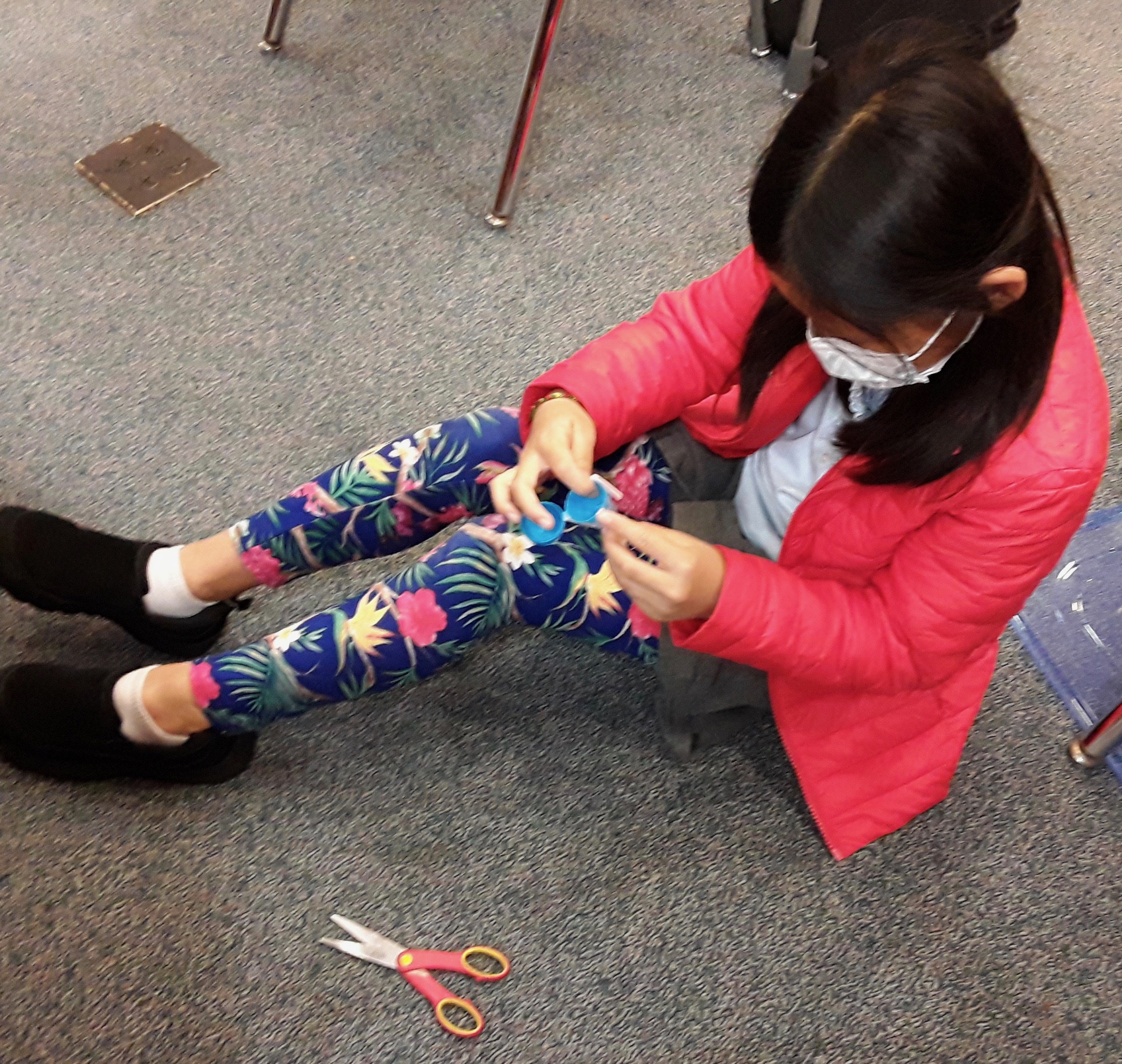 Thinking about my mother’s button box made me realize how important small common objects are for children: bottle caps, erasers, doodads – all manner of ephemera. They collect a myriad of these things in their desks at school.  I have confiscated thousands of tiny pencils, paper clips, and beads in my time as an elementary school teacher.  These treasure troves are important to children.  They are connectors to the imaginary.  They are a passport from the real world to an imaginary one.  They are indeed important.  In fact, they are essential. This is more and more evident in the time of COVID, as my students are going to school in-person behind masks and plexiglass, having to remain in their seats most of the day.  The urge to play is palpable.  They must sit, but they can still create with their hands. And to my delight they do! They fold paper, link paper clips, use great lengths of tape to transform their school world.