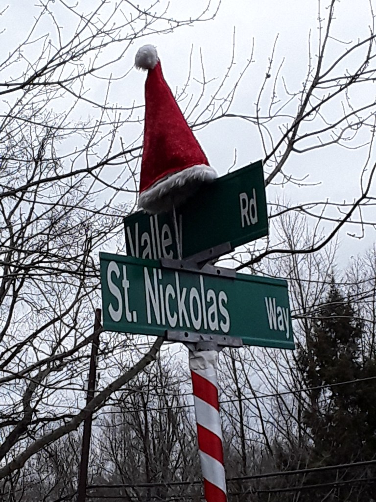 On the way back home, I passed a street I have passed many times since living in this small town for nineteen years.  It looks like every other street in town, except at Christmastime.  The street is named St. Nickolas Way, and at this time of year, the street sign is donned with a Santa hat.  Every time I pass by, I smile.  This time, I decided to stop and take a photo to remind me of holiday hope and Christmas imagination. I headed home, with a warm heart and a mind full of cheer.
