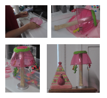 I laughed and agreed.  Then I asked her if I could dismantle her massive seashell sculpture so others could use the shells. She gave me her permission.  As I worked ungluing the shells, Laila started looking around the room at my materials.  She often finds things I didn’t know I had.  Soon, Laila held up a small pink plastic bowl, which was serving as a container for someone else’s small project.  I looked at her skeptically.