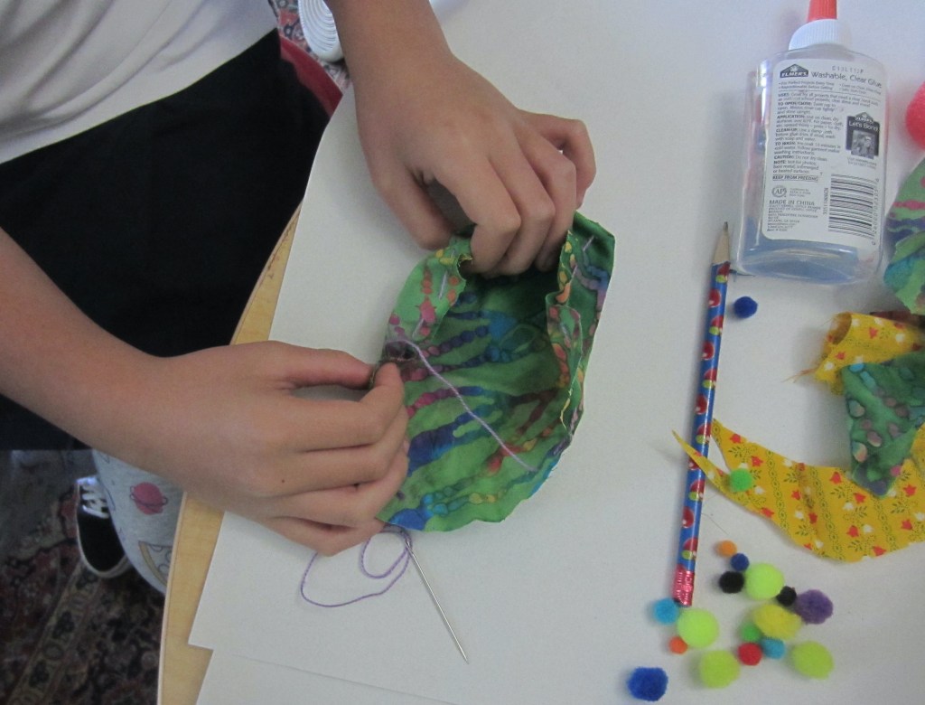 Later that day, I was walking down the hallway past Allie’s class. And there she was, colorful pom-pom pouch in hand showing it off to her admiring classmates like sewing was easy, like she had known how to sew all along. And this is why I continue to love teaching. These moments, these times with students, these small important lessons help them grow and make me proud that I continue to be a teacher.