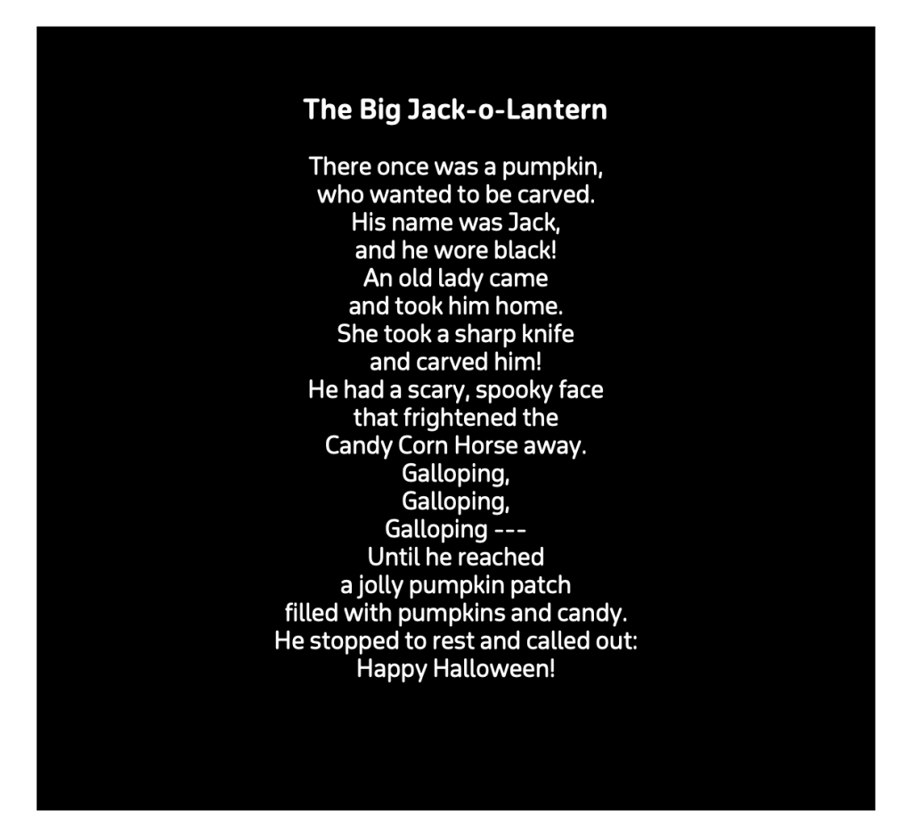 Children love to create poems about pumpkins and Halloween. They enjoy constructing acrostic, haiku, and free verse poems. Below is an example of a poem that a group of 2nd graders created.