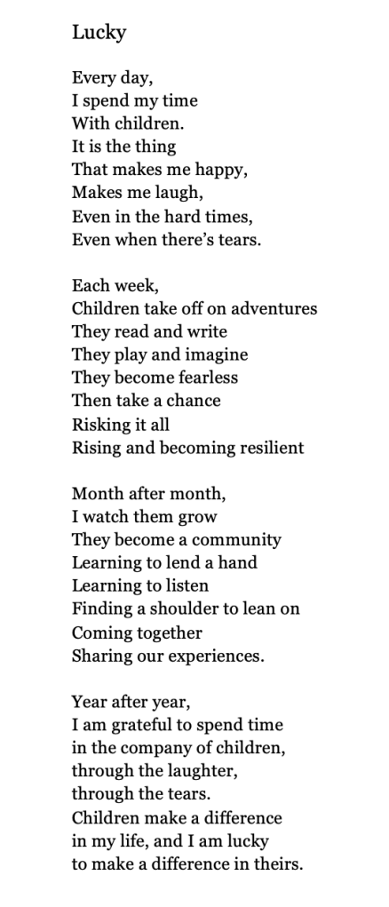 Since I was a child, I’ve measured my success by all the small moments I’ve had connecting to people through personal interactions and poetry.  Connection to me equaled success. Oh sure, I had thoughts of fame and money but that all fell away as I matured.  It’s not that I lost my ambition, it’s just that my ambition has taken another form.  I measure my success in the experiences I have with nature, people, and poetry.  I measure my success in the quality of teachable moments I’ve had with children.